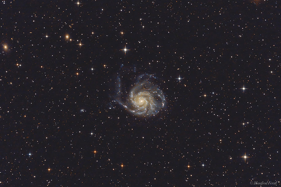 Messier 101 (auch als NGC 5457, Pinwheel-Galaxie oder Feuerrad-Galaxie bezeichnet) ist eine Spiralgalaxie mit den Abmessungen 28,8' × 26,9' und der scheinbaren Helligkeit von 7,5 mag im Sternbild Großer Bär. Ihre Entfernung beträgt rund 22 Millionen Lichtjahre, ihr Durchmesser 170.000 Lj. M 101 verfügt über fünf prominente Begleitgalaxien: NGC 5204, NGC 5474, NGC 5477, NGC 5585 und Holmberg IV. Messier 101 wurde am 27. März 1781 von dem französischen Astronomen Pierre Méchain entdeckt. Diverse helle Knoten von M 101, bei denen es sich um H-II-Gebiete und / oder Sternwolken handelt, sind unter einem separaten Eintrag im NGC zu finden. Am 28. Februar 2006 veröffentlichten NASA und ESA ein sehr eindrucksvolles Bild, das größte und detaillierteste Bild einer Galaxie, das mit Hilfe von Hubble angefertigt wurde. Das Bild wurde aus über 51 Aufnahmen zusammengesetzt. Am 24. August 201 wurde in M101 eine Supernova vom Typ Ia entdeckt, welche die Bezeichnung SN 2011fe erhielt.